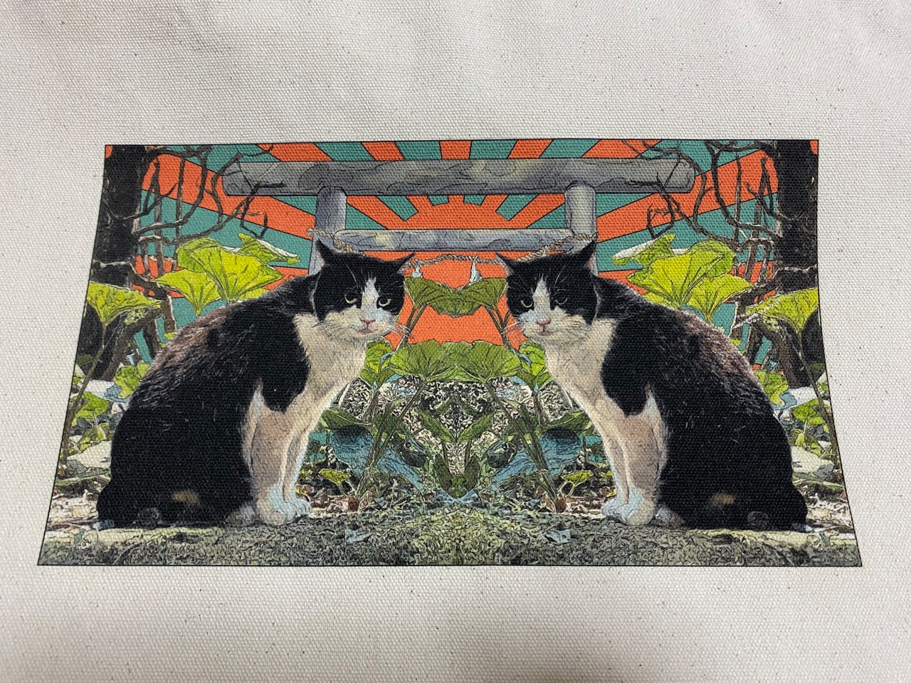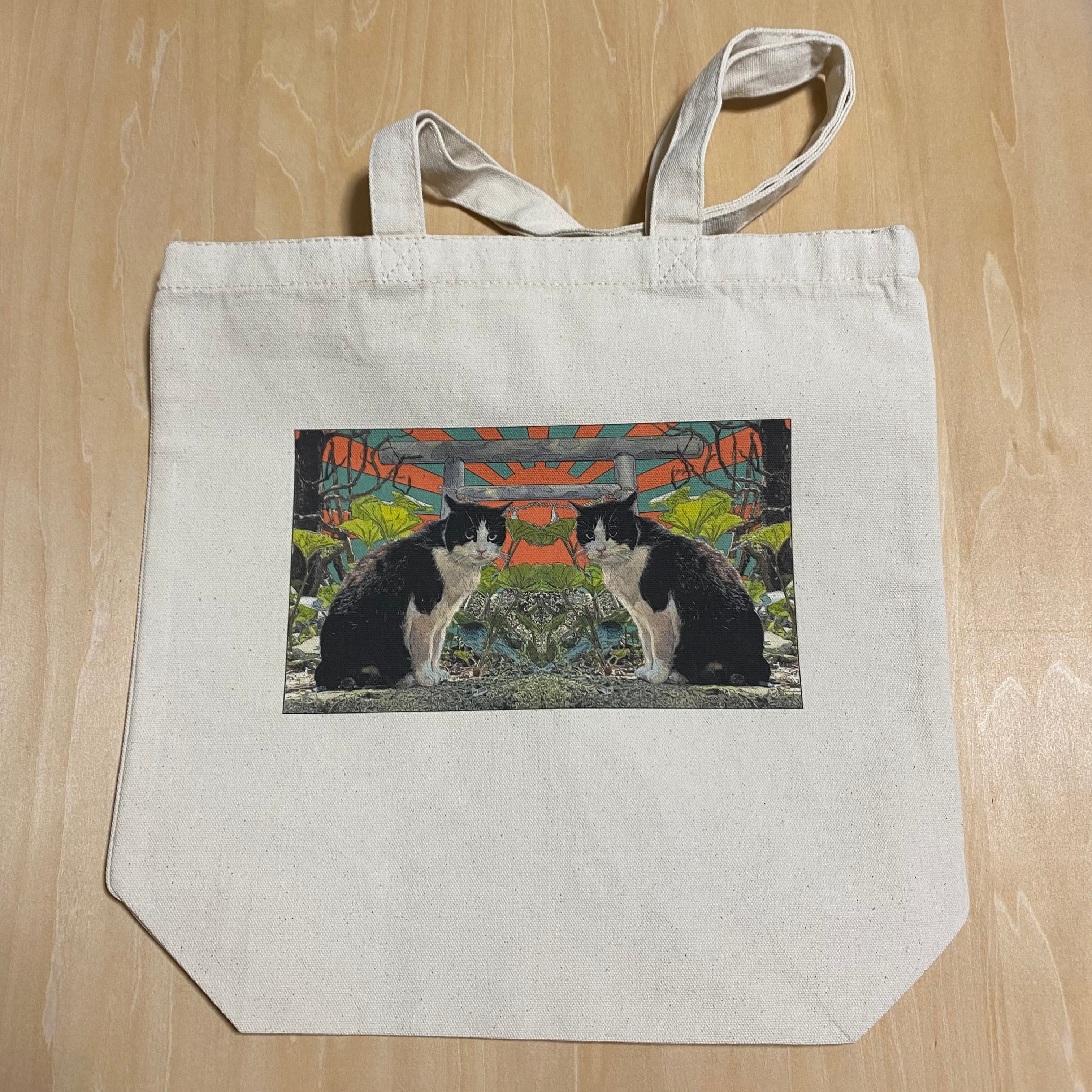 猫作品をプリントしたトートバッグです。 幅約360×高さ370mm 持ち手:約25×560mm